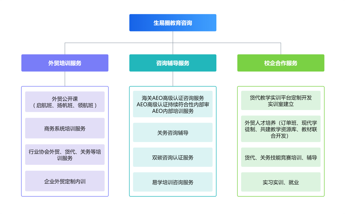 公司結合國際供應鏈外貿綜合服務及人才優(yōu)勢,立足外向型企業(yè)人才需求,成立湖南生易圈教育咨詢有限公司。